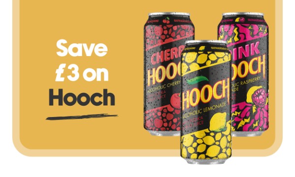 Save £3 on each case across the Hooch range. Credits paid at the end of the promotional period.