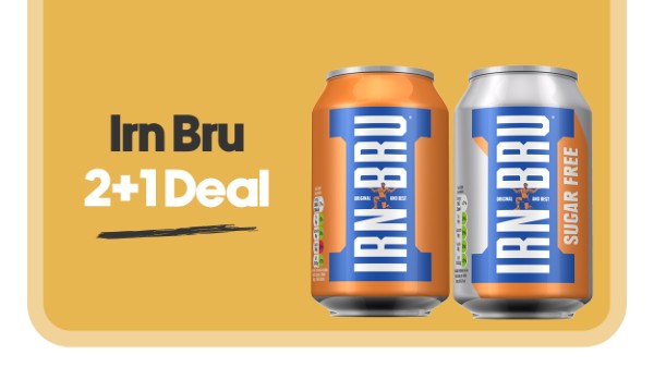 Irn Bru 2+1 Deal Buy two cases from the Irn Bru range and get one case of free.