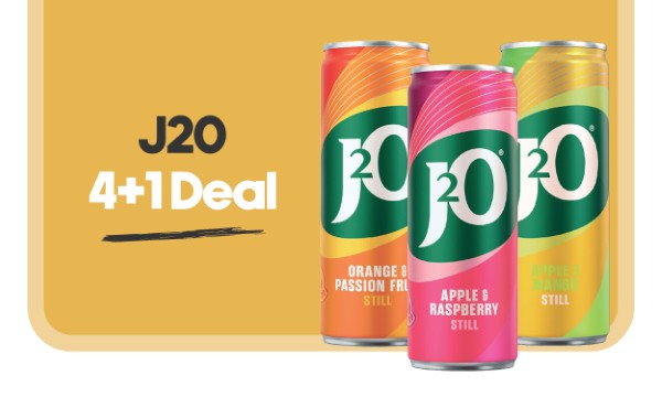 Buy four cases of J2O 24x330ml cans and get one case of Orange & Passionfruit cans free.