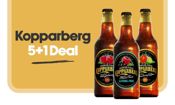 Kopparberg 5+1 Deal Buy any five cases from across the Kopparberg range and get a case of Kopparberg Mixed Fruit free.
