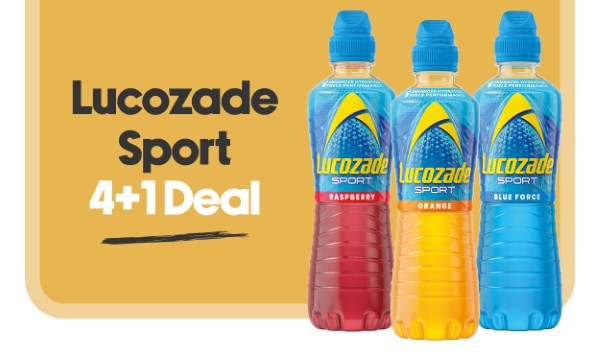 Lucozade Sport 4+1 Deal Buy four cases from the Lucozade Sport range and get one case of Lucozade Blue Force free.