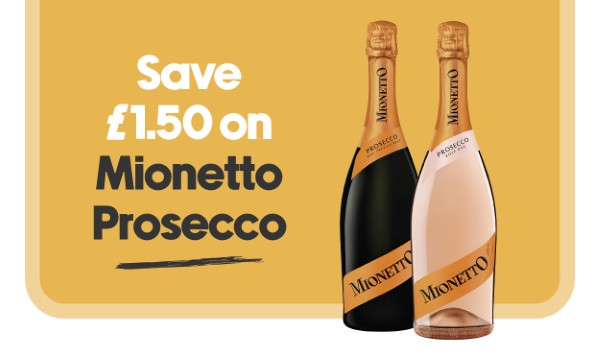 Save £1.50 on each case of Mionetto Prosecco or Mionetto Prosecco Rose.