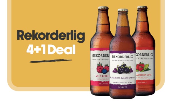 Rekorderlig 4+1 Deal Buy any four cases from across the Rekorderlig range and get one case free.