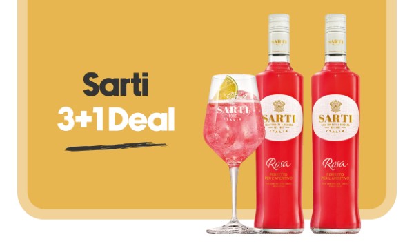 Sarti 3+1 Deal Buy three bottles of 70cl Sarti and get one bottle free.