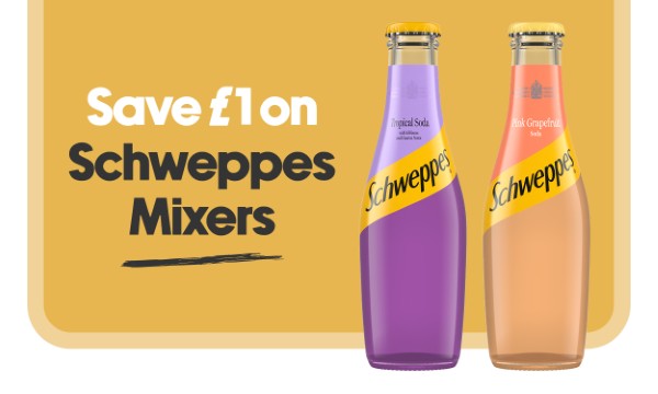 Schweppes Mixers Save £1 Save £1 on each case of Schweppes 200 & 150ml Mixers. Credits paid at the end of the promotional period.