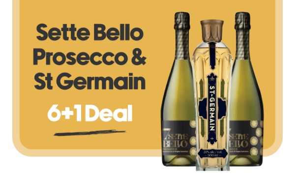 Buy six bottles of 75cl Sette Bello Prosecco and get one 70cl bottle of St-Germain, glassware & POS free.