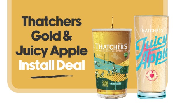 Thatchers Gold & Juicy Apple Install Deal Install Thatcher's Gold or Juicy Apple and get a 50ltr keg and POS kit free. Contact your Sales Development Manager for more information