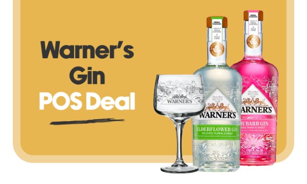 Warners Gin POS Deal Buy three bottles of 70cl Warner's products and get one case of Copa glasses free.