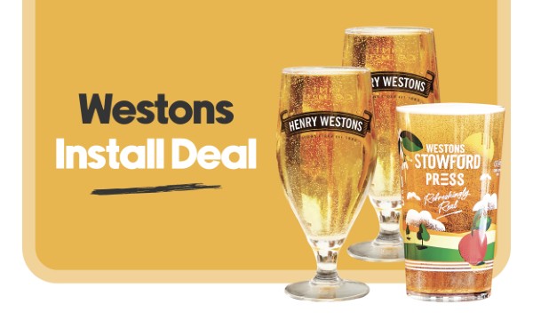 Westons Install Deal Install any Westons Cider Keg product and get a 50ltr keg & POS kit free. Contact your Sales Development Manager for more information