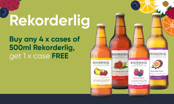 Buy any four cases from across the Rekorderlig range and get one case free.