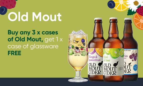 Old Mout Buy any 3 x cases of Old Mout, get 1 x case of glassware FREE