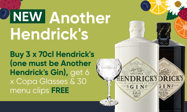 Buy three bottles of 70cl Hendricks Gin (one must be 'Another Hendricks') and get branded glassware and POS free.
