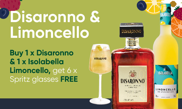 Buy 1 x Disaronno & 1 x Isolabella Limoncello, get 6 x Spritz glasses FREE