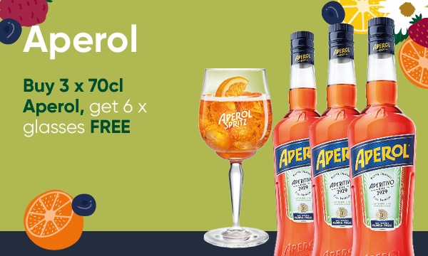 Aperol Buy 3 x 70cl Aperol, get 6 x glasses FREE