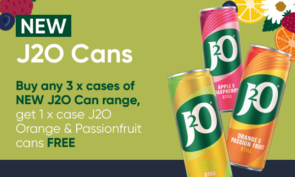 Buy any 3 x cases of NEW J2O Can range, get 1 x case J2O Orange & Passionfruit cans FREE