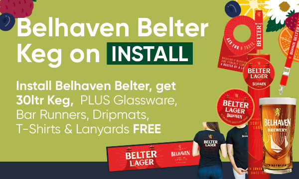 Belhaven Belter Keg on Install Deal Belhaven Belter get 30ltr Keg on install, PLUS Glassware, Bar Runners, Dripmats, T-Shirts & Lanyards FREE