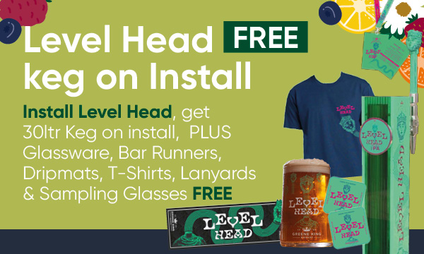 Install Level Head, get 30ltr Keg on install, PLUS Glassware, Bar Runners, Dripmats, T-Shirts, Lanyards & Sampling Glasses FREE