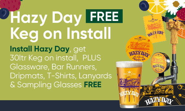 Hazy Day Free Keg on Install Deal Install Hazy Day, get 30ltr Keg on install, PLUS Glassware, Bar Runners, Dripmats, T-Shirts, Lanyards & Sampling Glasses FREE