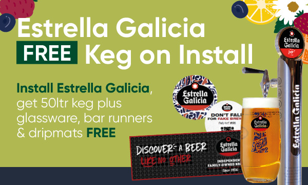 Install Estrella Galicia, get 50ltr keg plus glassware, bar runners & dripmats FREE