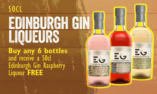 Buy any 6 bottles and receive an 50cl Edinburgh Gin Raspberry Liqueur free