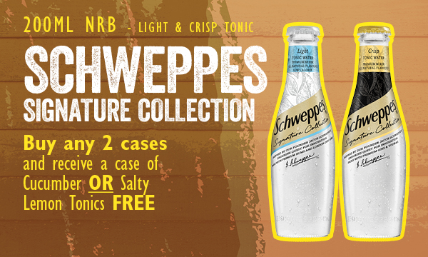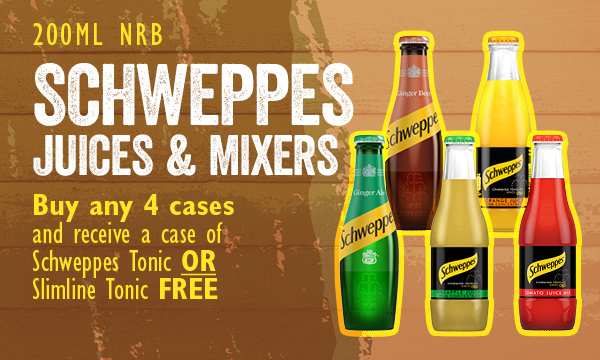 Buy any 4 cases and receive a case of Schweppes Tonic OR Slimline Tonic free