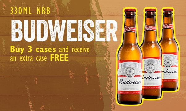 Budweiser Buy 3 cases and receive an extra case free