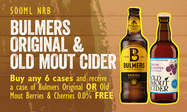Buy any 6 cases and receive a case of Bulmers Original or Old Mout Berries & Cherries 0.0% free