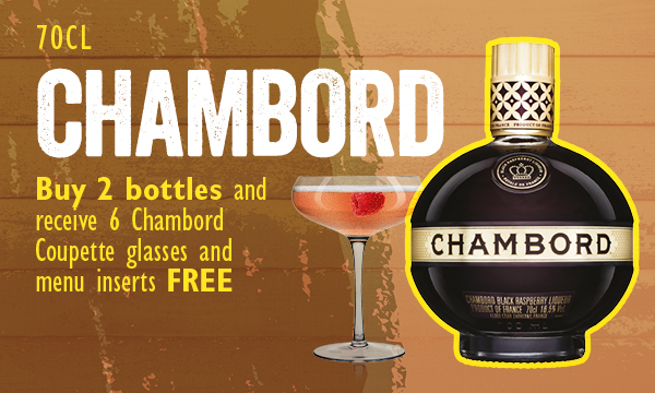 Buy 2 bottles and receive 6 Chambord coupette glasses and menu inserts free