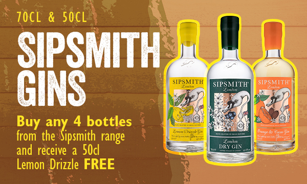 Sipsmith Gins Buy any 4 bottles from the Sipsmith range and receive a 50cl Lemon Drizzle Gin free