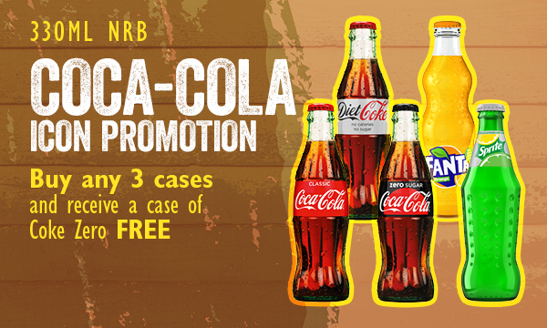 Coca-cola Icon Promotion Buy any 3 cases and receive a case of Coke Zero free.