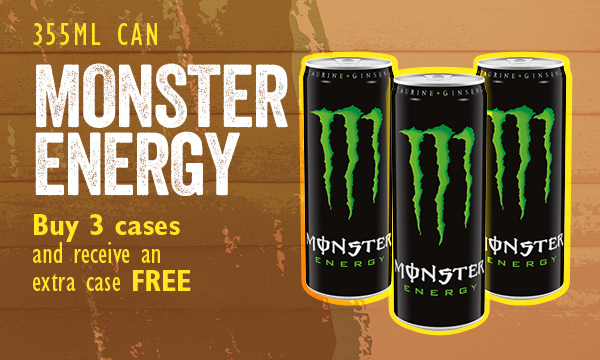 Monster Energy Buy 3 cases and receive an extra case free.