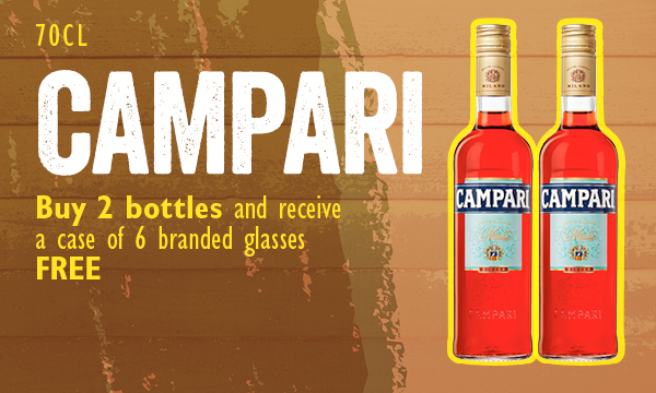 Campari Buy any 2 bottles and receive a case of 6 branded glasses free 6 branded glasses