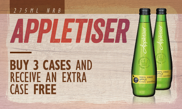 Appletiser 275ml nrb Buy any 3 cases and receive an extra case free Qualifying products 24x275ml Appletiser |