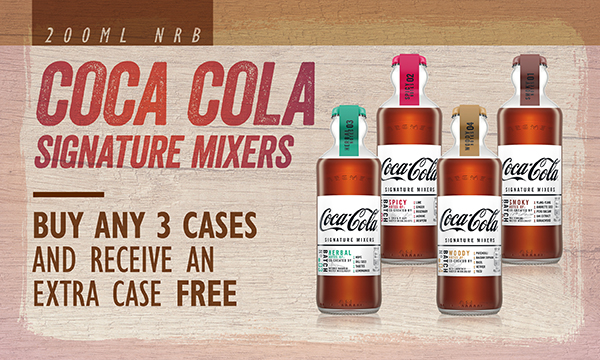 Coca Cola Signature Mixers Buy any 3 cases and receive an extra case free Qualifying products 12x200ml Coca-Cola Signature: Herbal 03, Smoky 01, Spicy 02, Woody 04 |