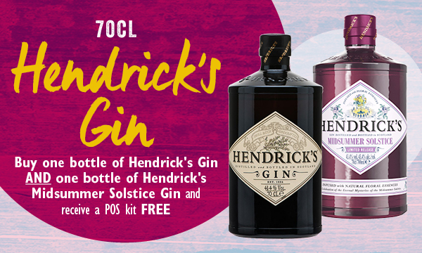 Hendrick's Gin Buy any 2 bottles and receive a free POS kit containing a chalkboard and 6 Crossley glasses Chalkboard, 6 Crossley glasses 1 deal per customer per promotional period. |