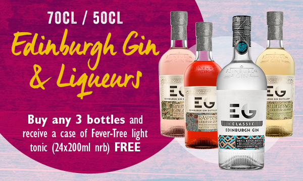 Edinburgh Gin & Gin Liqueurs Buy any 3 bottles from the range and receive a case of Fever Tree Light Tonic free