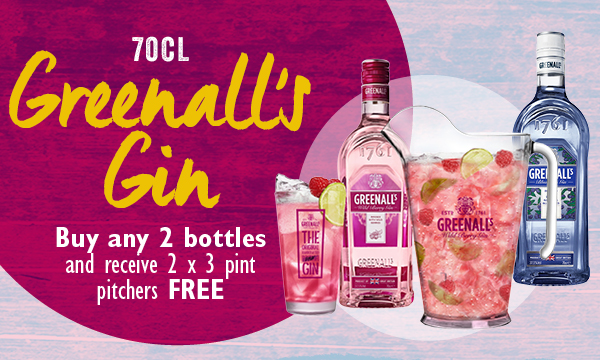Greenall's Gin Buy any 2 bottles and receive 2 x 3 pint pitchers FOC 2 x 3-pint pitchers
