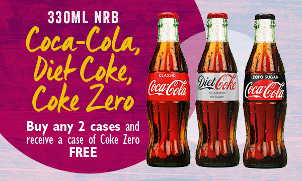 Coca-Cola 330ml nrb Promotion Buy any 2 cases and receive a case of Coke Zero free