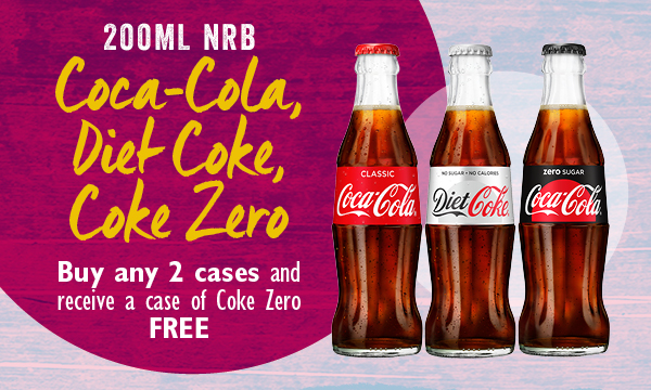 Coca-Cola 200ml nrb Promotion Buy any 2 cases and receive a case of Coke Zero free