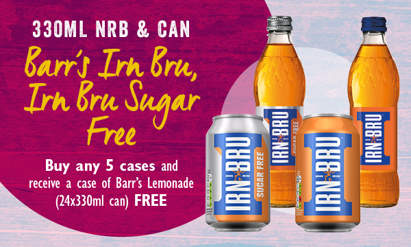 Irn Bru & Irn Bru Sugar Free Buy any 5 cases and receive a case of Barr's Lemonade 24x330ml can free