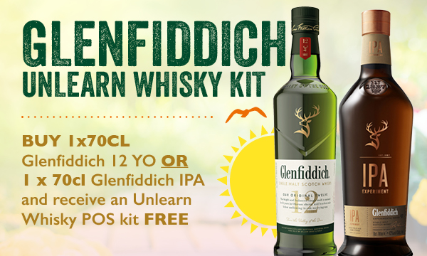 Buy 1 x 70cl Glenfiddich 12 YO or 1 x 70cl Glenfiddich IPA receive an Unlearn Whisky POS kit free