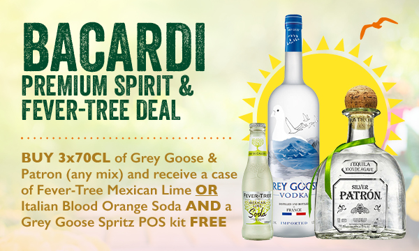 Bacardi Premium Spirit & Fever Tree Deal Buy 3 x 70cl of Grey Goose & Patron (any mix) receive a case of Fever Tree Mexican Lime OR Italian Blood Orange Soda AND a Grey Goose Spritz POS kit free 6 x Grey Goose Spritz branded glasses and stirrers