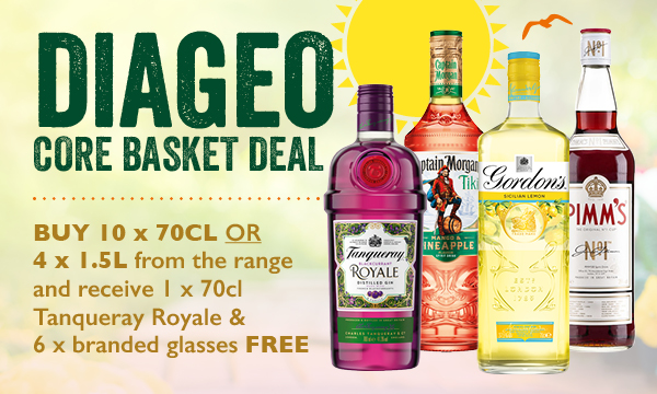 Dieageo Core Basket Deal Buy 10 x 70cl or 4 x 1.5l from the range receive 1 x 70cl Tanqueray Royale & 6 x branded glasses 6 x Tanqueray Branded Glasses