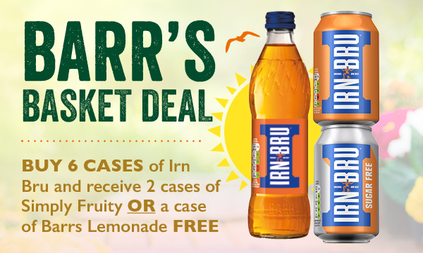Barr's Basket Deal Buy 6 cases of Irn Bru and receive 2 cases of Simply Fruity or a case of Barrs Lemonade free