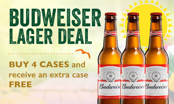Budweisier Lager Deal Buy 4 cases and receive an extra case free
