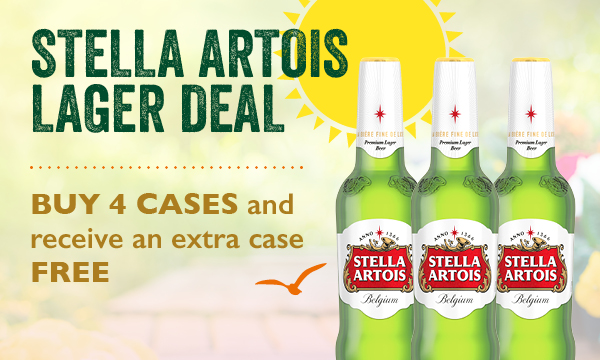 Stella Artois Lager Deal Buy 4 cases and receive an extra case free