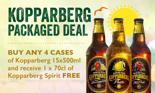 Buy any 4 cases of Kopparberg 15x500ml receive 1 x 70cl of Kopparberg Spirit free