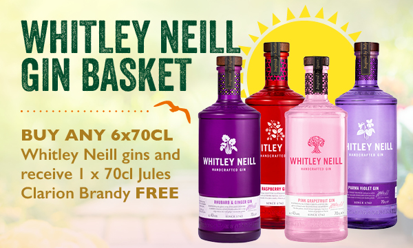Buy any 6 x 70cl Whitley Neill gins and receive 1 x 70cl Jules Clarion Brandy free