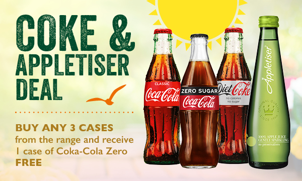 Coke & Appletiser Deal Buy any 3 cases from the range receive 1 case of Coka-Cola Zero free