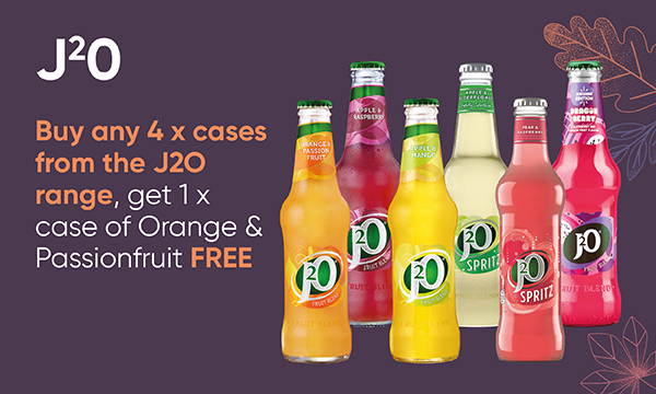 J20 Buy any 4 x cases from the J2O range, get 1 x case of Orange & Passionfruit FREE